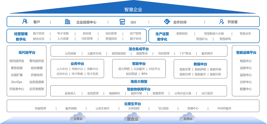 盈易彩票海岳PaaS平台,围绕柔性可装配、超级自动化两大技术群组,汇聚云原生、微服务、低代码等多重技术,涵盖低代码平台inBuilder、数据中台inDataX、智能物联网平台inIoT、云原生平台、大模型平台、混合集成平台、智能运维平台等核心子平台,助力企业构建应用敏捷创新、端到端流程驱动、一站式数据管理、数实融合、运维全景可观测等数字化核心能力,打造快速、可靠、响应、直觉、智能的全新数字化交互体验,支撑构建敏捷应变、实时智能的未来智慧企业。